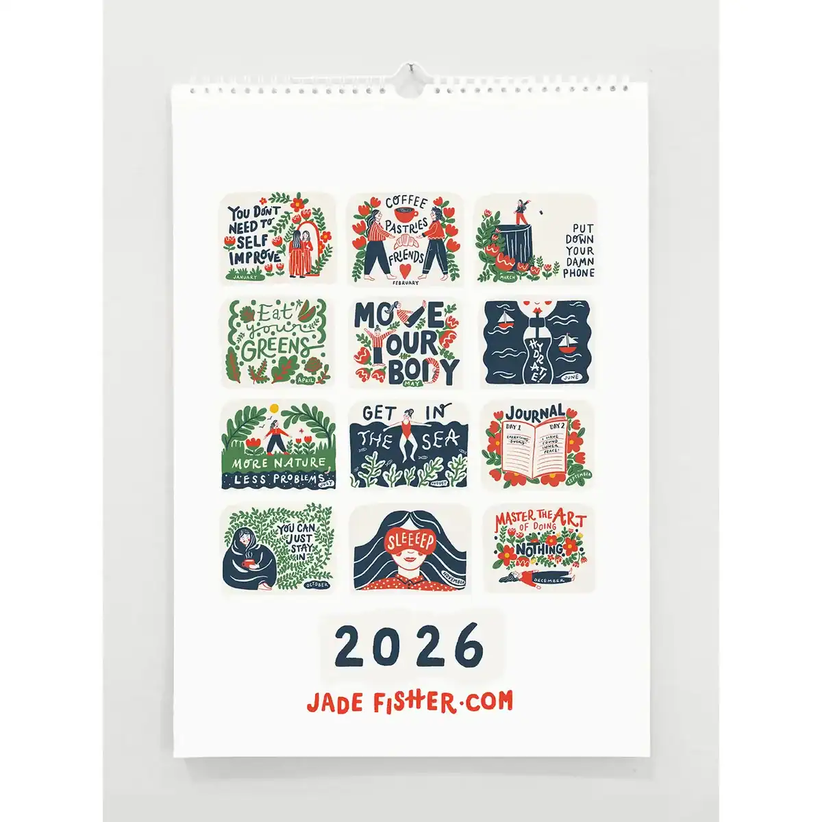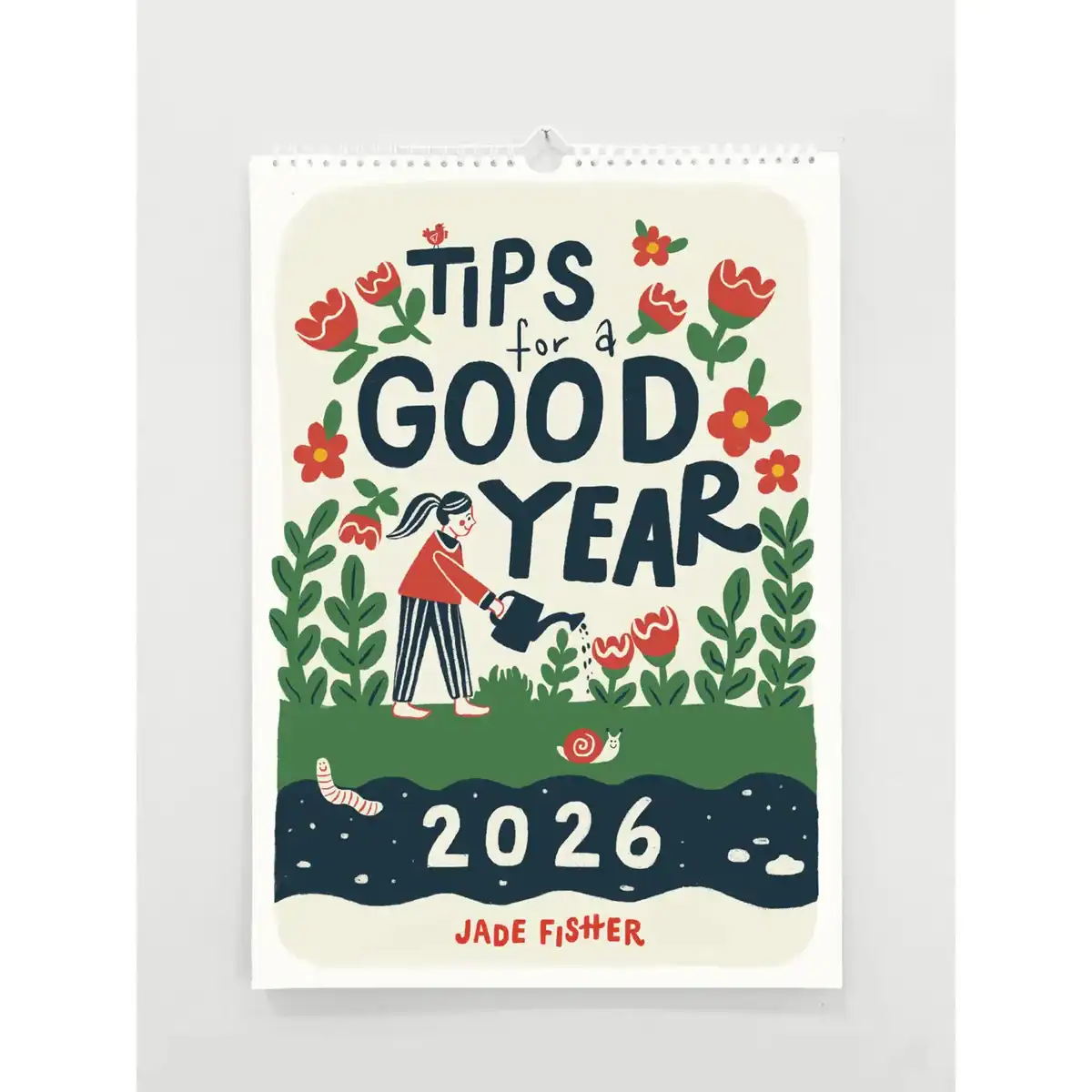 Tips For A Good Year 2026 wall calendar by Jade Fisher, illustrated and printed in the UK.